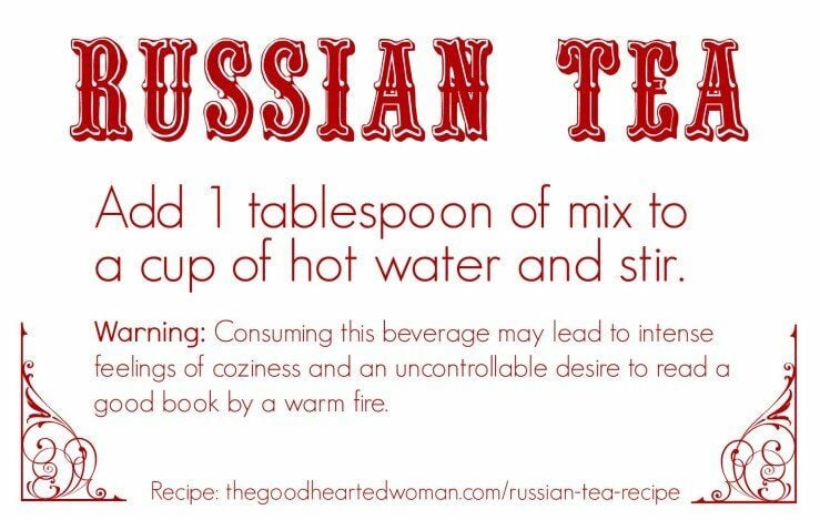 Just print them on cardstock, cut them out, and tie them on with twine or ribbon. They're designed to include the simple directions so your friends and family can enjoy a cup of Russian Tea anytime.
